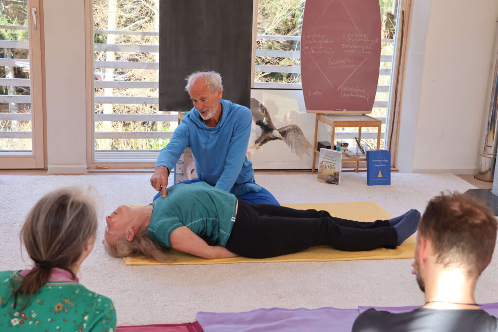 Wieder zurückkommend auf die Asanapraxis betont Heinz Grill die Bewusstseinsführung. Das schöne Ziel, ästhetische Formen zu erschaffen und anhand der Vorstellung zu dieser Form etwas hinzuzufügen, bedarf der Führung des Bewusstseins. Weniger günstig wäre, diese „gerade so
